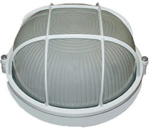 Corp pe perete/tavan cu grila (aluminiu). E27. rotund. IP54. alb. Ecostrum