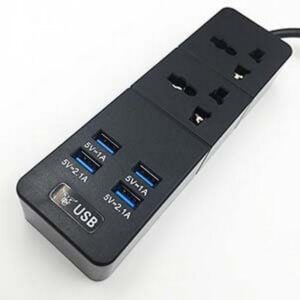 • Prelungitor adaptor priza US/UK/CH/EU+4USB 5 V Cupra. 2 m. 10 A. Negru.